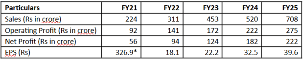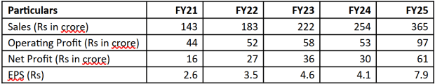 FY25 numbers reflect sustained momentum. Revenue increased 36% year-on-year (YoY) and profit after tax (PAT) by 22%. Margins are still strong, with an operating profit margin of 39% and PAT margin well in excess of 30% — one of the highest in the defence electronics sector.