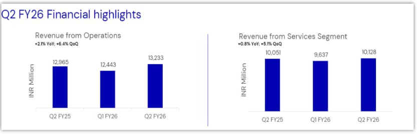 Nonetheless, EBITDA increased by 5.3% to ₹4.9 billion, while PAT rose just 2.8% to ₹3.2 billion. With the tariff picture becoming clear, LTTS expects improvement in both revenue and EBIT margins in H2 of FY26 due to the increased order book and focus on profitable growth.