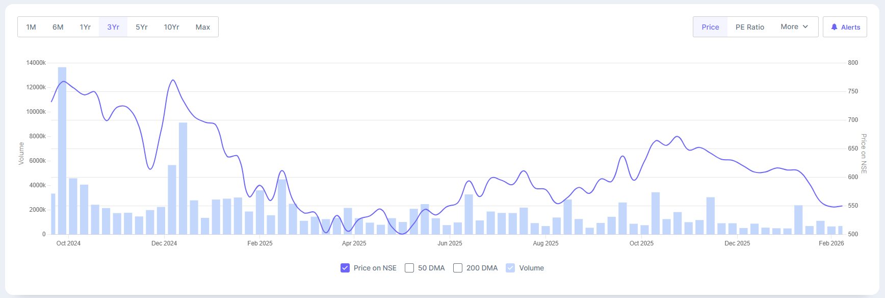 But over the past three years, its stock price fell from ~₹731 in September 2024 to ~₹548 as of 6th Feb 2026.