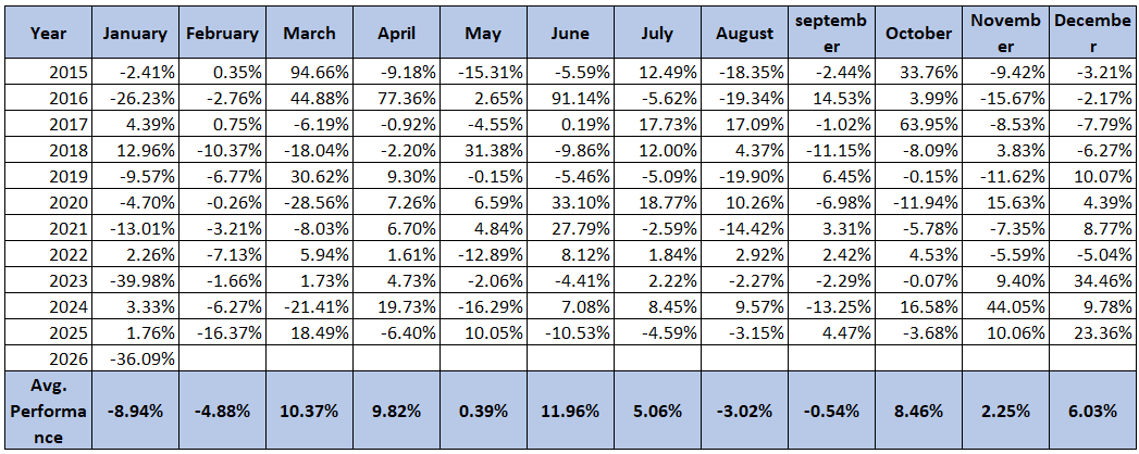 In the past, January and February have had average returns of -4.78% and -3.38%, respectively. Again, things are slow at the beginning of the year. But starting in March, things start to pick up quickly.