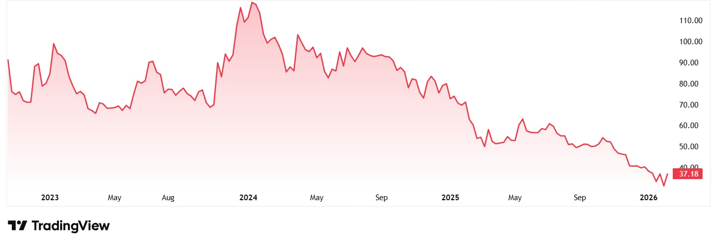 The share price of Tracxn Technologies Ltd was around Rs 91 when it was listed in October 2022, which has fallen sharply to Rs 37 as on 11th February 2026.