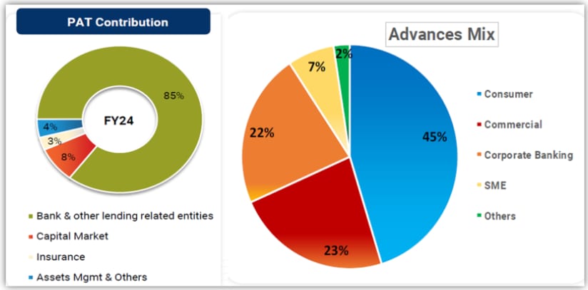 Although the bank has presence in many other business areas, including broking, life insurance, and asset management, the standalone banking entity contributes the most to its profit, 85%.
