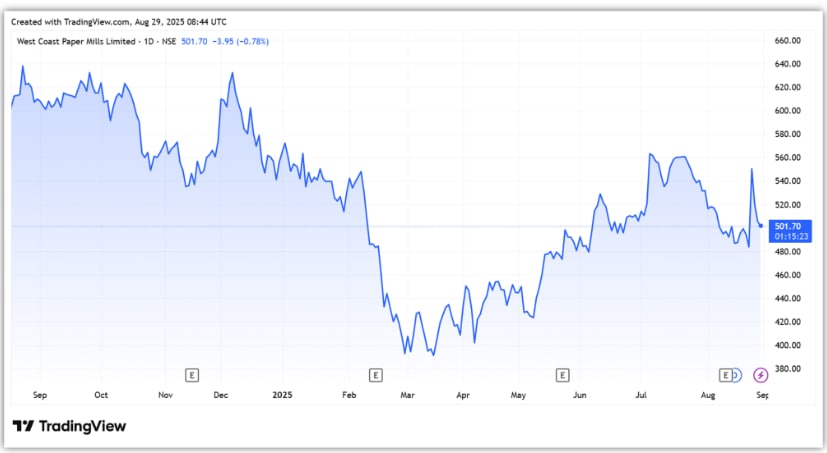 Revenue declined 9.6% year-over-year to ₹3.8 billion in Q1FY26. PAT declined 59.5% to ₹150 million, as margin fell 600 bps to 5%. This sluggish performance was due to global uncertainties, weak demand, and the continued flow of cheap imported paper into India.