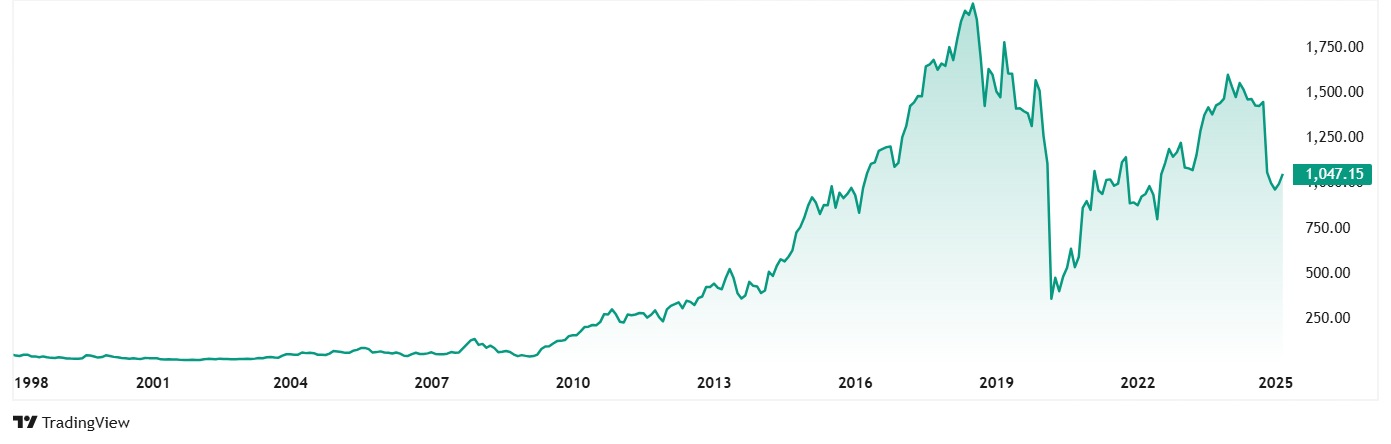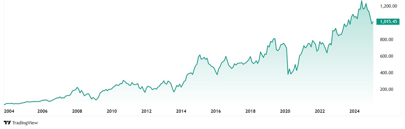 The stock prices were around Rs 705 in Feb 2020 and as of market close for the 4th of February 2025, the price was Rs 998, which is a jump of 42% in 5 years.