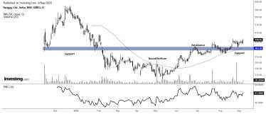 Now it has managed to breach past resistance and is acting as the herald of a rally created by a rounding bottom pattern. It is trading above the 50-day moving average, & the RSI is in bullish territory, which is testing the strength itself.