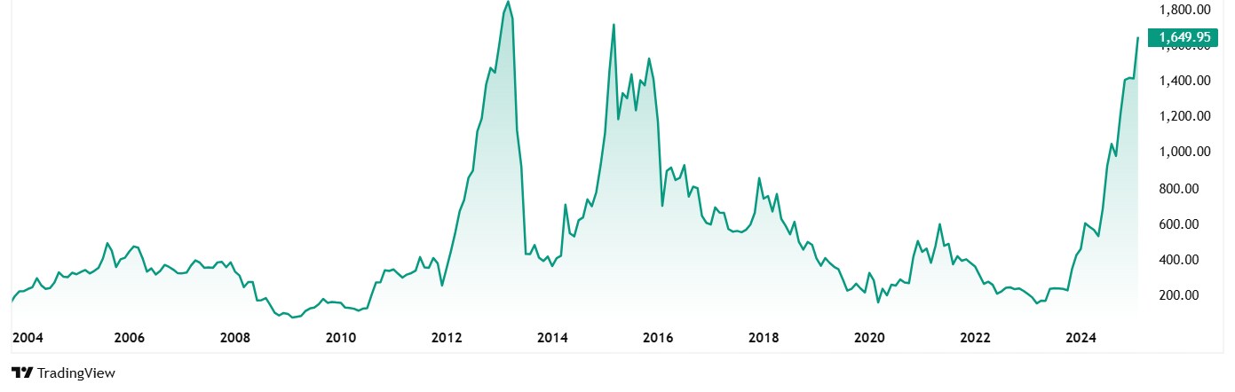 Wockhardt’s current share price is Rs 1,635 (as on 6th February 2025) which is a big 414% jump over its 5-year-old price of around Rs 318.