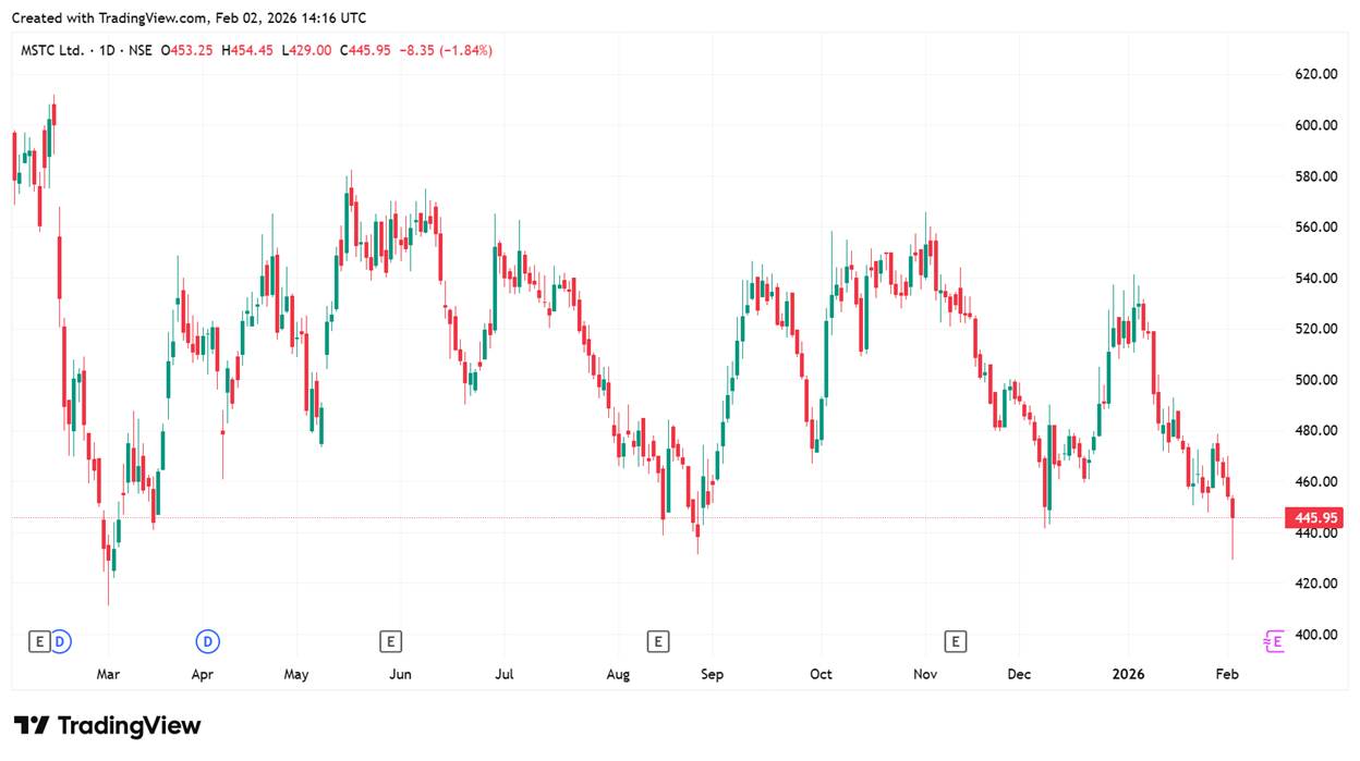 MSTC has paid a dividend of ₹40.5 in FY25 (including the ₹32 interim dividend paid in February 2025). This translates into a dividend yield of 9.1% at the current price of ₹443 per share. As a PSU, MSTC maintains a legacy of paying dividends to shareholders almost every year.