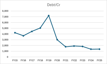 From a debt of over Rs 7,000 cr to Rs 1,373 cr in FY25, the company’s debt came down by over 80% in just 5 years.