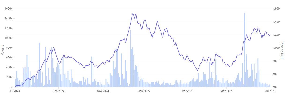 Siemens (India) – 1 Year Share Price Chart