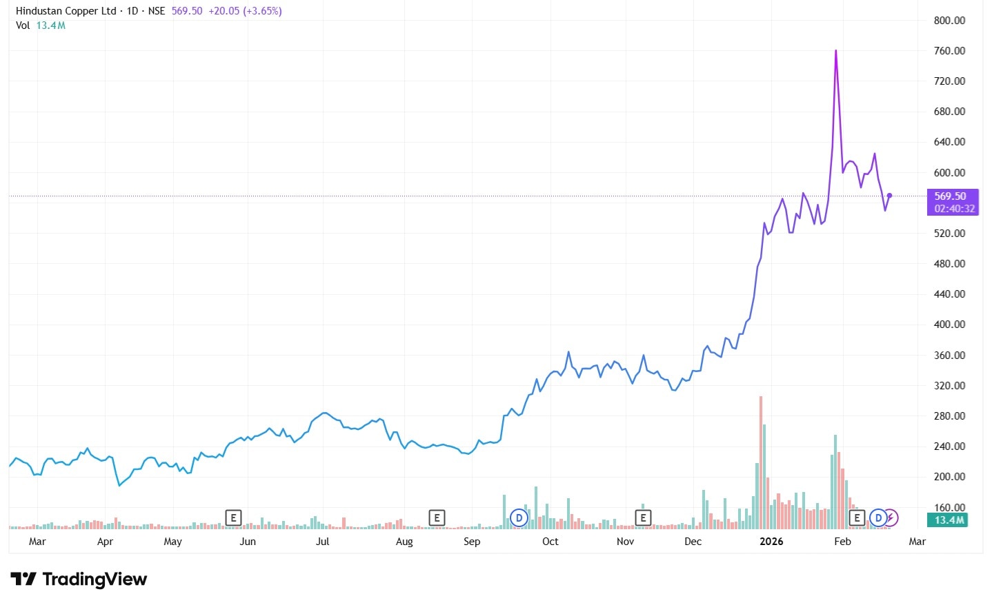 1-Year Share Price Chart of Hindustan Copper Ltd.