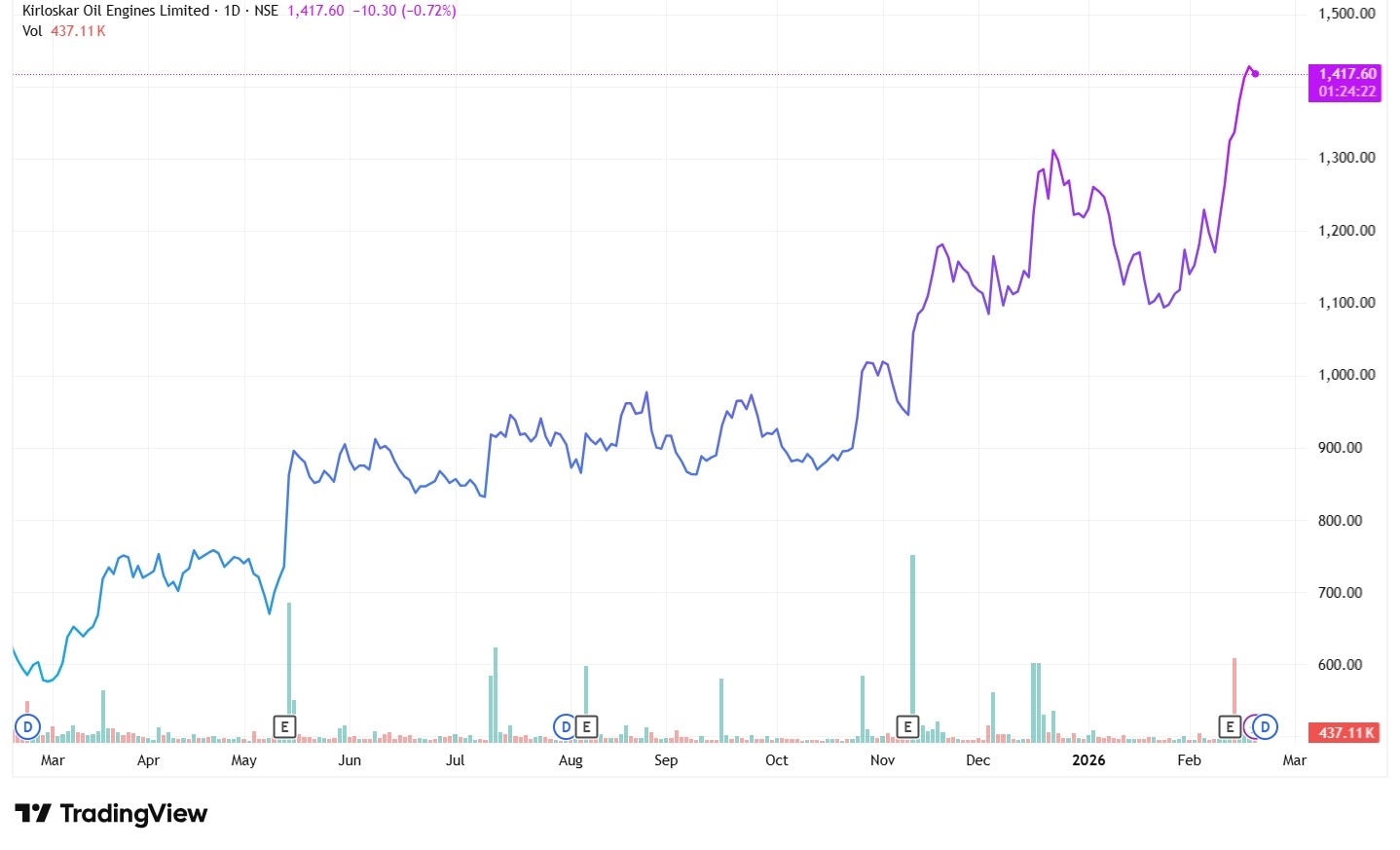 Kirloskar Oil Engines Ltd. (KOEL) is a leading manufacturer and service provider for diesel engines and diesel generators. This stock rallied 130% in the last year, mostly driven by stellar performance in Q2 and Q3 FY26, followed by strategic restructuring and more.
