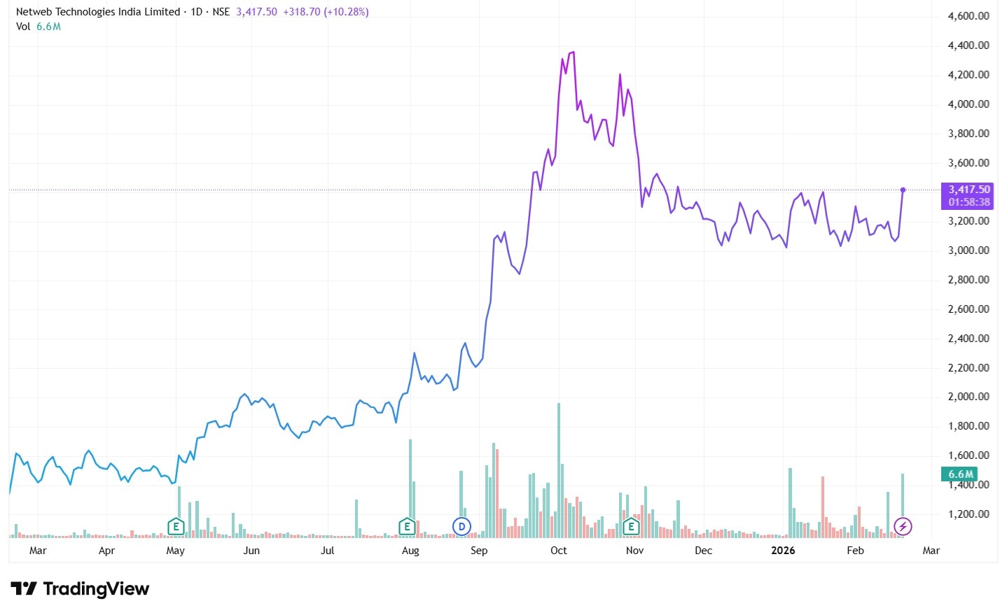 1-year Share Price Chart Netweb Technologies India Ltd.