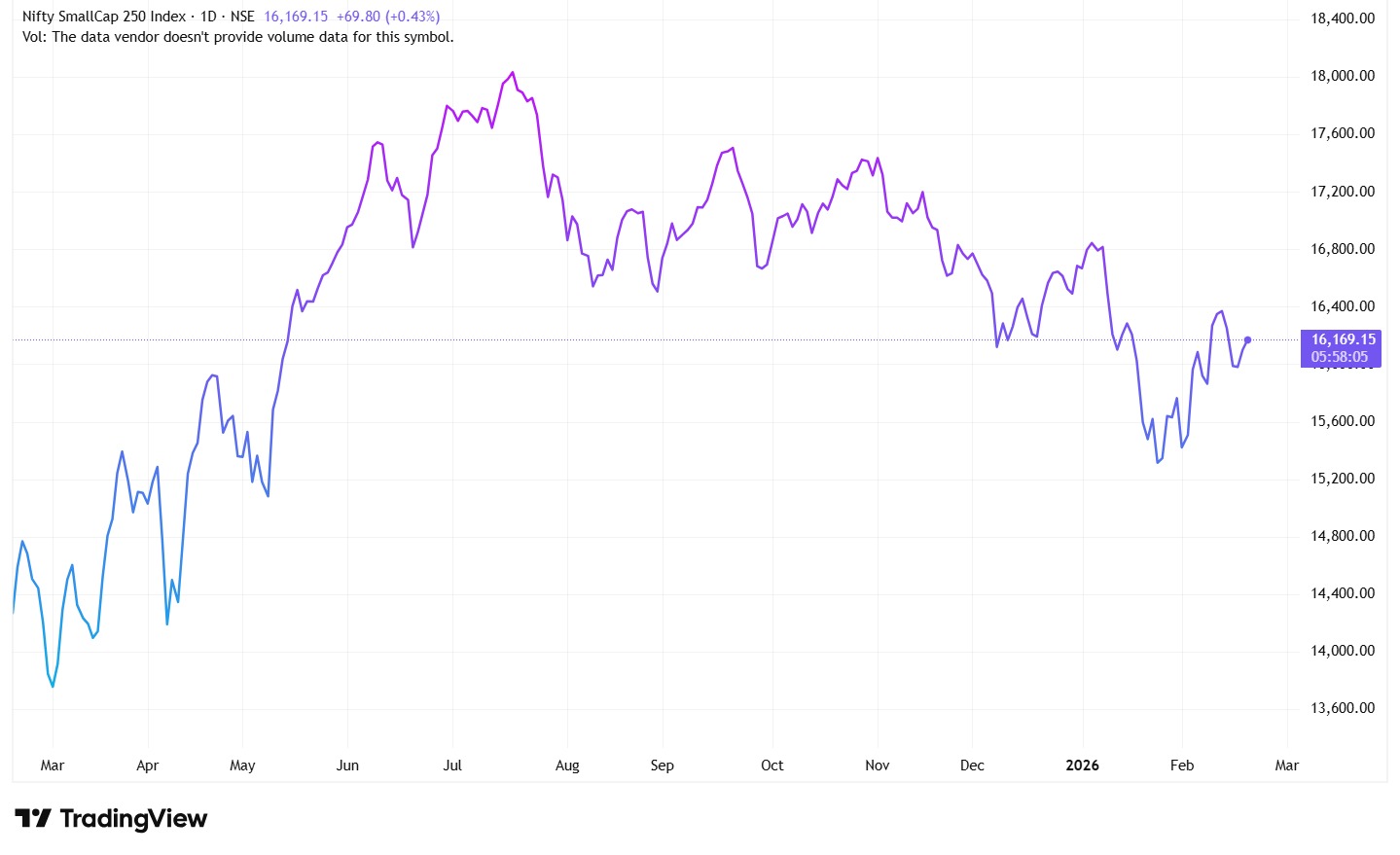 Owing to the volatility and other factors at play, the 1-year return of the index stood at around 13% (as of 18 February 2026).