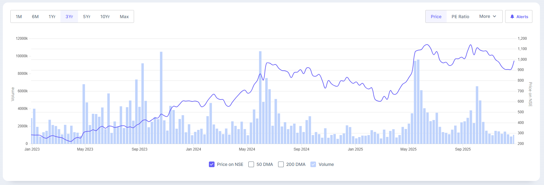 Astra Microwave 3-Year Share Price Trend