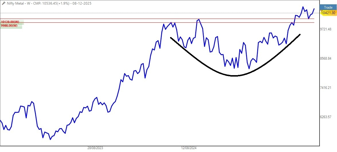 After a year when precious metals were the best performers, base metals are following them and the Nifty Metal Index’s ability to make higher bases with break out suggests that this is not a short-term trade but a possible sectoral leadership theme.