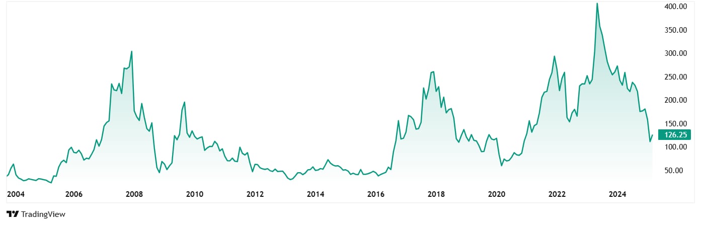 Aptech’s share price has seen a good change in the last 5 years as it jumped from Rs 55 in March 2020 to Rs 126 as on closing for 21st March 2025. That is a jump of 130%.