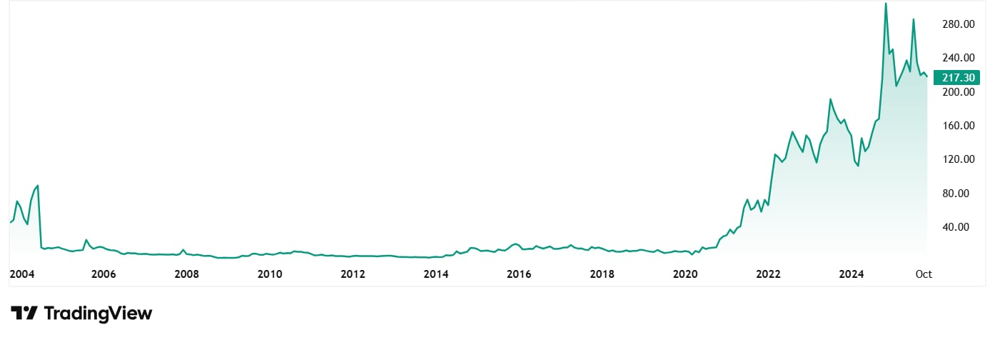 The adjusted share price of Jagsonpal Pharmaceuticals Ltd was around Rs 16 in November 2020 and as on 6th November 2025, it is at Rs 217, which is a jump of over 1,250%. Rs 1 lac invested in the stock 5 years ago would have been close to Rs 13.5 lacs today.
