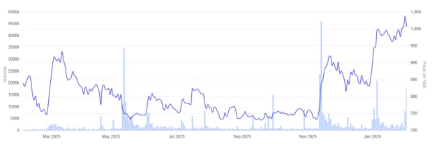 Privi Speciality Chemicals 1 Year Share Price Chart