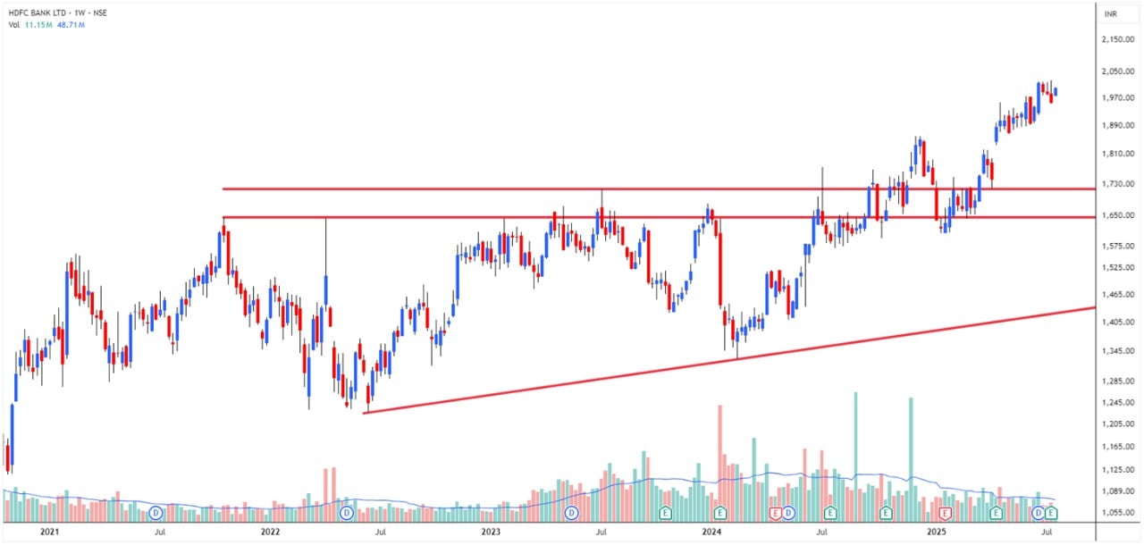 The successful retest was followed by renewed bullish momentum, showing that the bulls used the dip to re-enter. The ongoing trend indicates that HDFC Bank’s bullish momentum is likely to sustain through the remainder of 2025, provided broader market conditions remain supportive.