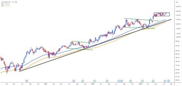On the weekly chart, the stock is maintaining a Higher High – Higher Low structure, indicating a bullish trend in line with Dow Theory. Considering the chart pattern, the series of multiple bullish breakout patterns confirms the potential strength of the ongoing uptrend.