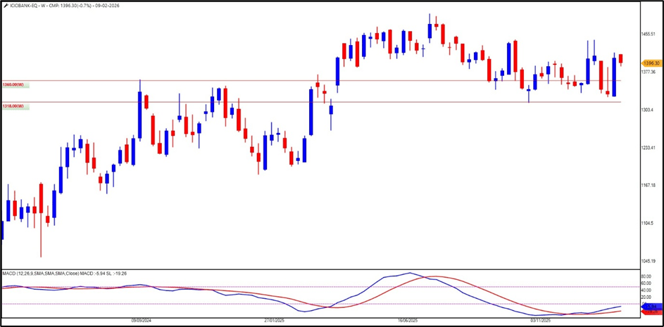 ICICI Bank’s ability to stay above its previous high shows that it is strong. The trend is still healthy as long as it keeps making higher highs and higher lows.