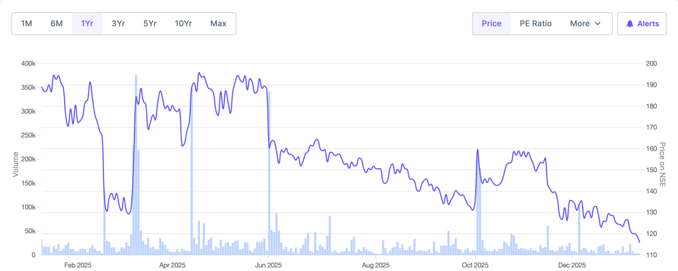 Somi Conveyor Beltings Ltd. 1-Year Share Price Chart