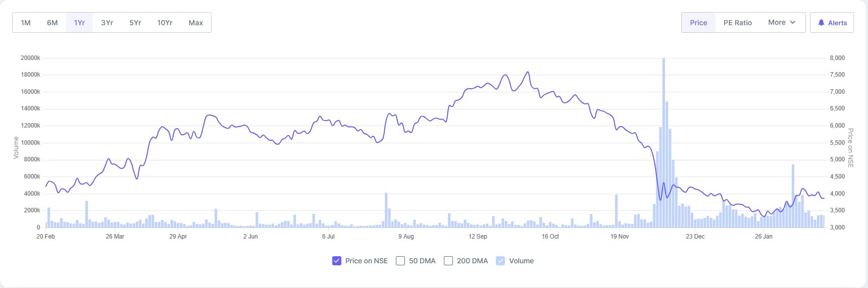Per its latest investor presentation, the return on equity (RoE) was 12.5%, while the return on capital employed for 9M FY26 was 14.1%. However, the stock price fell 8% over the past one year.