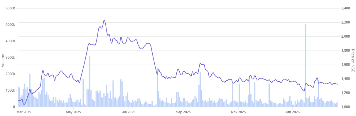 Paras Defence and Space Technologies 1 Year Share Price Chart