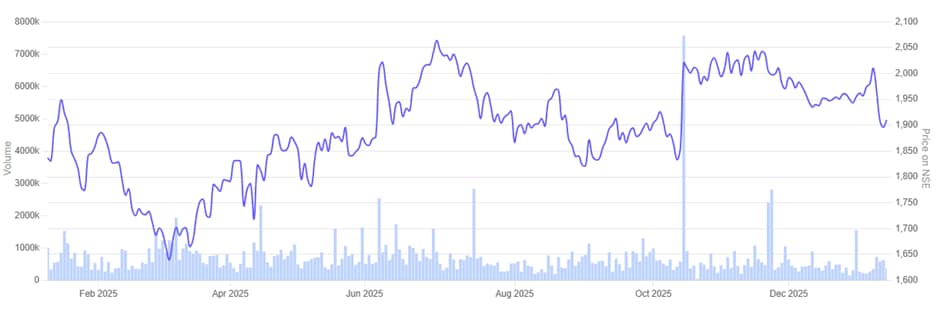 ICICI Lombard General Insurance Company 1 Year Share Price Chart