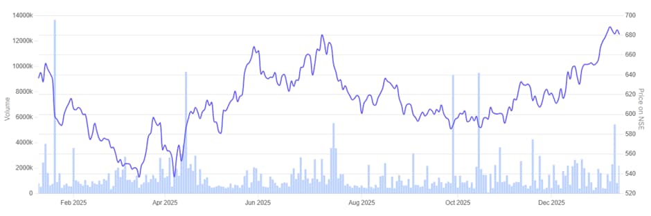 HDFC Life Insurance Company 1 Year Share Price Chart