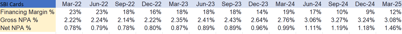 The rising repo rates from 2022 to combat high inflation also made the cost of credit high for SBI Cards. This was visible in its margins.
