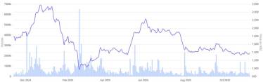 L&T 1 Year Share Price Chart
