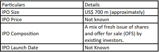 The expected amount to be raised through its IPO is yet to be determined. We cannot confirm the amount or the size. Some reports in the media have indicated an IPO size of US$ 700 million (m).