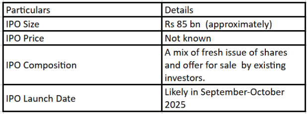 The company has filed the DRHP and is targeting a listing around September–October 2025.
