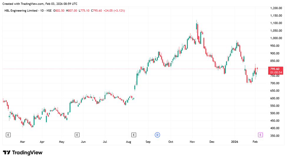 HBL Engineering operates in the batteries, defence, and railway sectors. HBL’s business model is built on identifying and filling technology gaps in India. This strategy focuses on building sustained competitive advantages through owned technology.