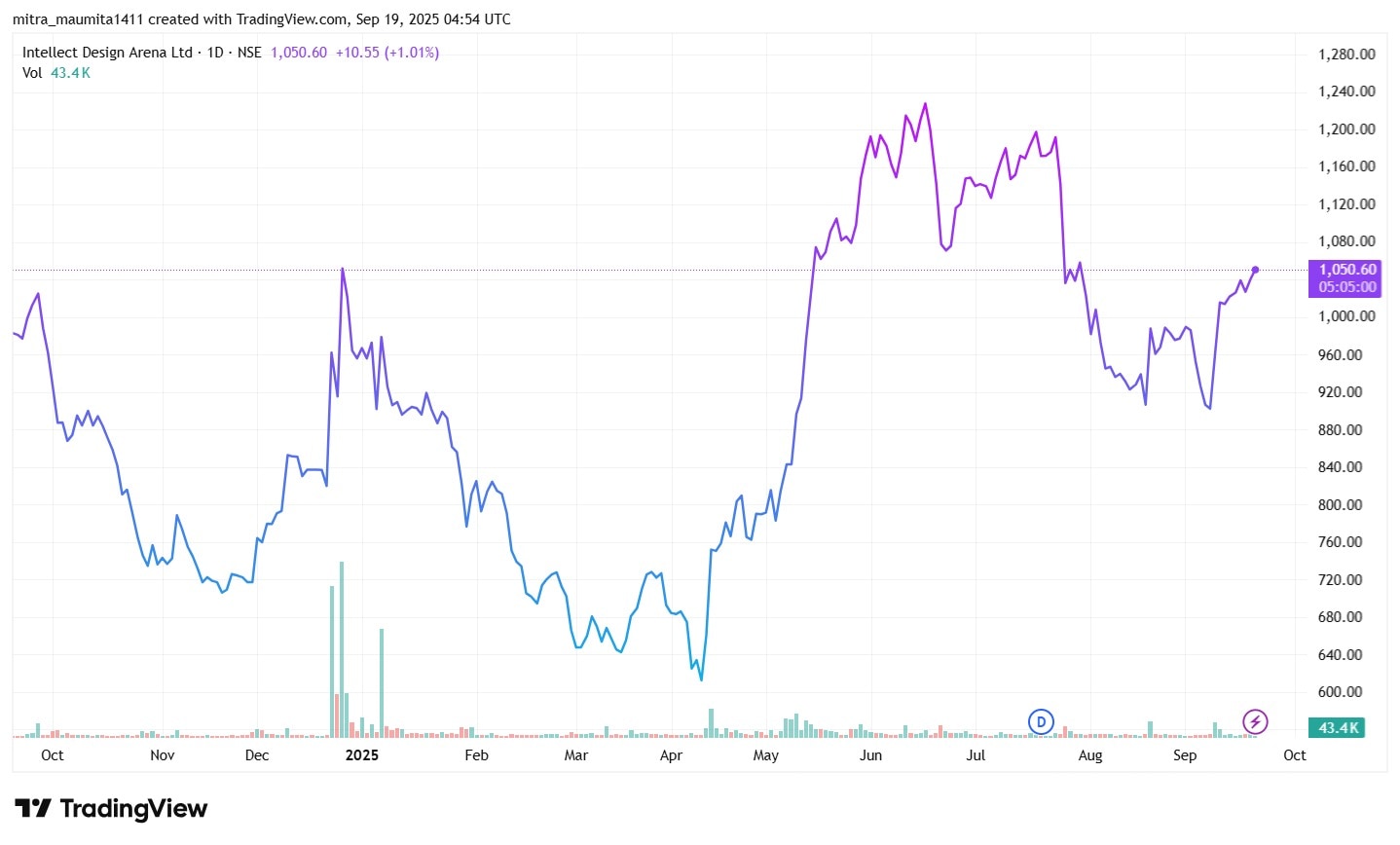 1-year Stock Price Chart of Intellect Design Arena Ltd.