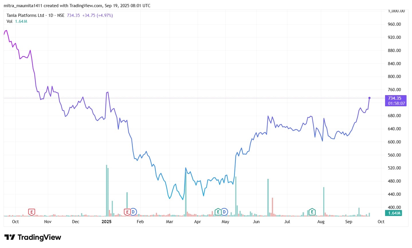 1-Year Share Price Chart of Tanla Platforms Ltd.