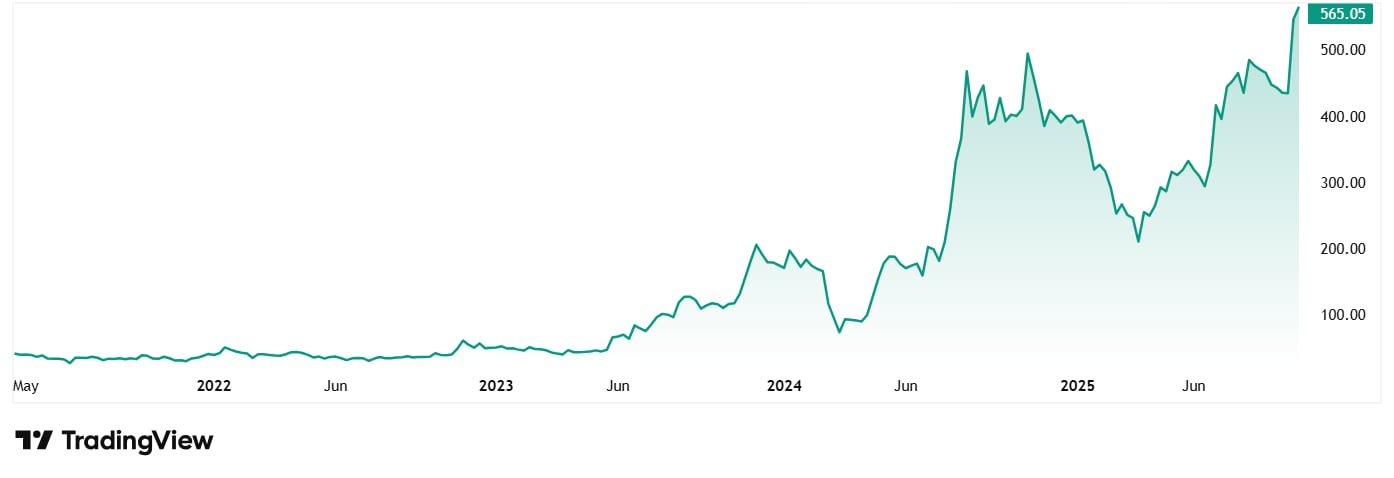 The share price of V-Marc India Ltd when it was listed in April 2021 was around Rs 41, which has now grown to Rs 569 as on 16th October 2025, a jump of 1,288%. Rs 1 lac invested in the stock at listing would have been close to Rs 14 lacs today.