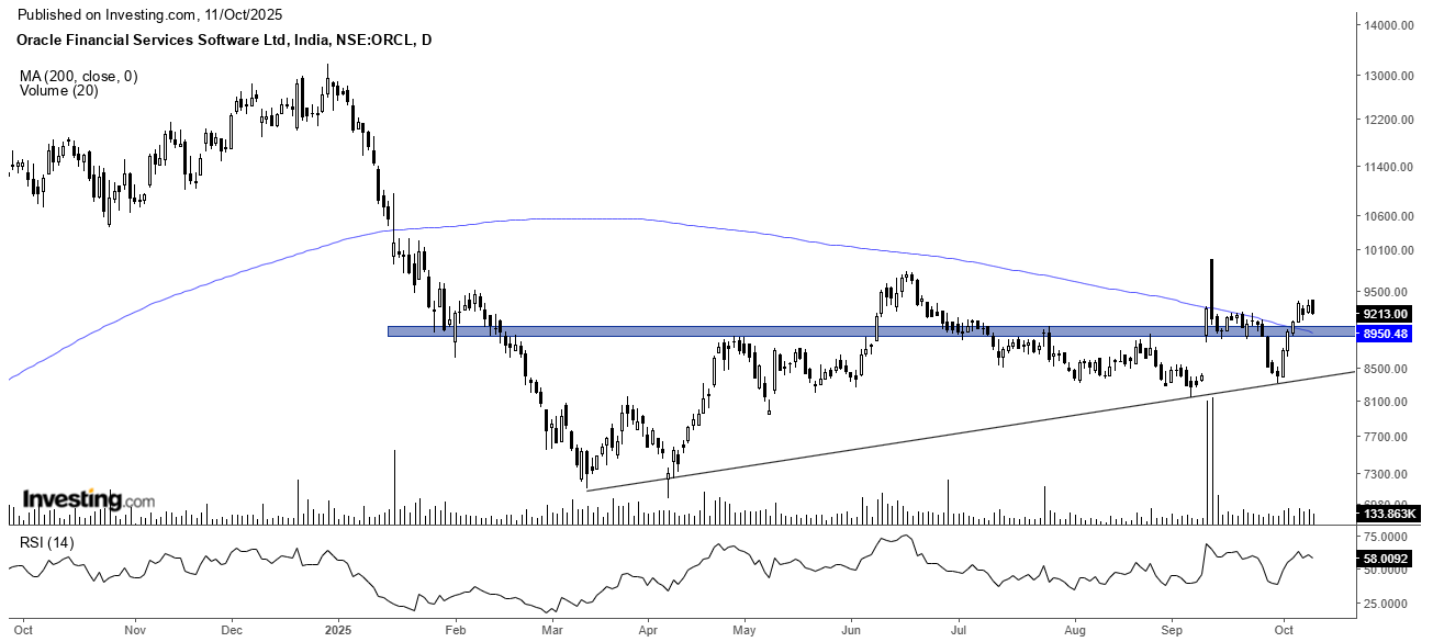 Price of OFSS shares dropped down from ₹13,220 to ₹7,040 in the period from December 2024 to April 2025 but went back up to ₹9,200 in June, which is a rise of 33%. The fact that the stock has made such a quick recovery is a sign of its resilience & strong investor support.