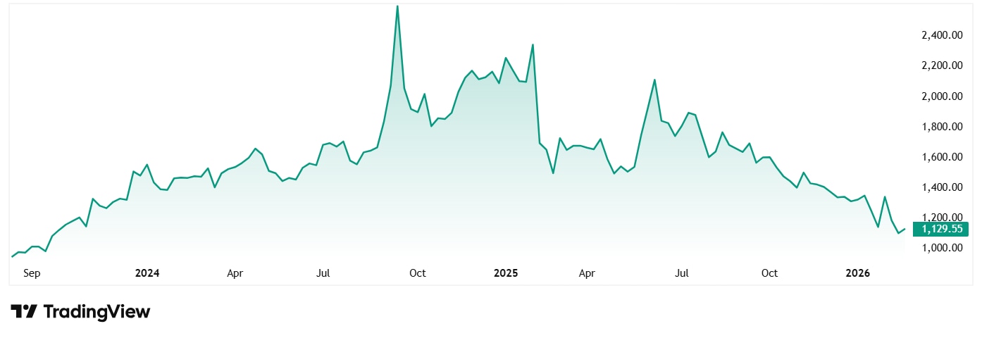The company was listed in August 2023 at a share price of around Rs 940 and climbed to log its all-time high of Rs 2,664 a year later in September 2024. However, since then, the price has corrected by over 55% to its current price of Rs 1,135 as on 25th February 2026.
