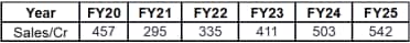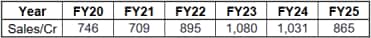 The sales of the company saw a lot of ups and downs between FY20 and FY25.