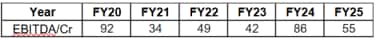 EBITDA (Earnings Before Interest, Taxes, Depreciation, and Amortization) also saw a drop between FY20 and FY25.