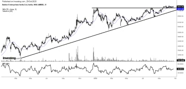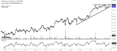 Between January and June 2025, the stock saw a 36% correction after moving in a negative trend. After emerging from consolidation since September, it is now forming an ascending triangle pattern, a classic bullish continuation indication.