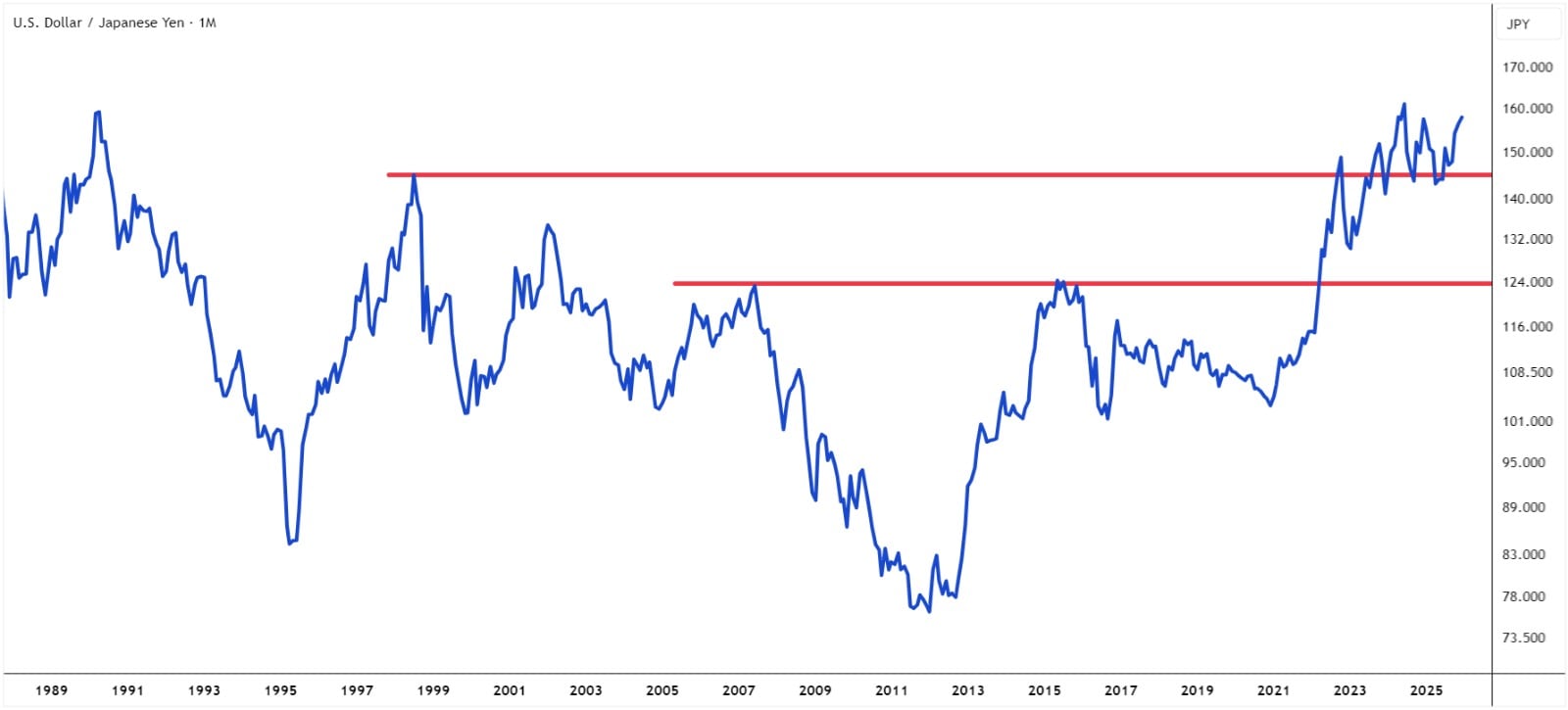 If the Yen weakens further and USDJPY moves decisively above 160, it would only confirm the ongoing trend. From a chart perspective, that would not be surprising.