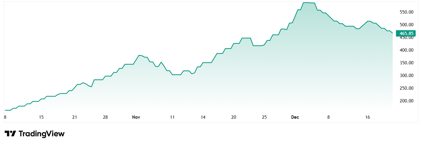 The share price of Zelio E-Mobility Limited when it was listed in October 2025 was around Rs 162. As on 22nd December 2025 the price was at Rs 466, which is a jump of 188% in just about 3 months.