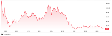 The company’s sales have dropped from Rs 6,166 cr in FY19 to Rs 1,857 cr in FY24. That is a drop of 70% in 5 years. Even for quarters between April and December 2024, the total sales recorded is only Rs 1,224 cr, which does not point towards a strong quarter or a fiscal year.