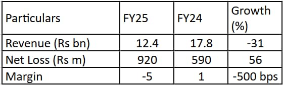 Higher input prices and supply chain disruptions have also negatively impacted margins, which turned negative at 5% in FY25.