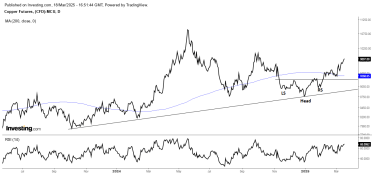 - 200-Day SMA Crossover – Copper has moved above its 200-day Simple Moving Average (SMA) for the first time since November 2024, signalling a potential shift in trend.