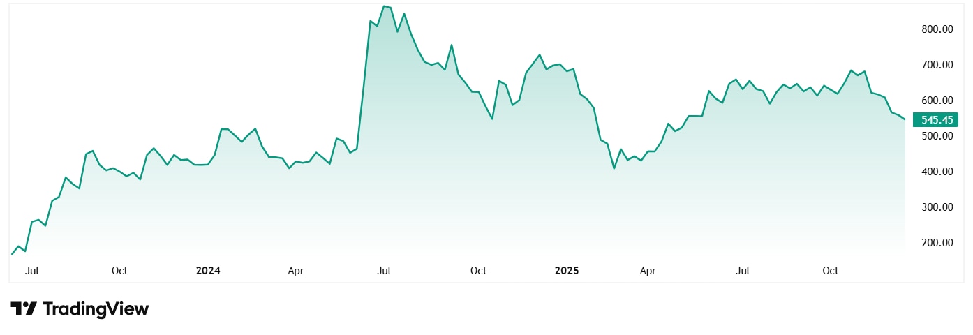 The share price of CFF Fluid Control Ltd was around Rs 165 when listed in June 2023, and as of closing on 24th December 2025 the price was Rs 545, which is a jump of 230% in less than 3 years.