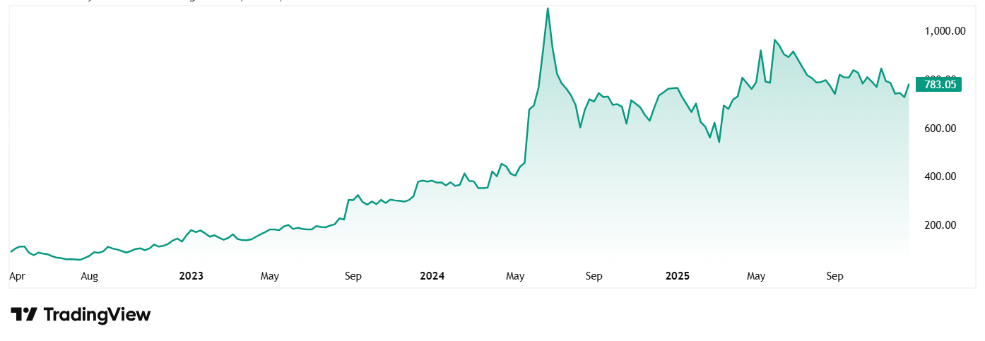 The share price of Krishna Defence & Allied Industries Ltd was around Rs 85 when listed in April 2022 and as of closing on 24th December 2025, the price was Rs 783, which is a jump of 820% in less than 4 years.